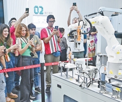 拉美代表參觀襄陽(yáng)數(shù)字工業(yè)創(chuàng)新中心時(shí),被智能化的工業(yè)設(shè)備所吸引。朱熙勇攝