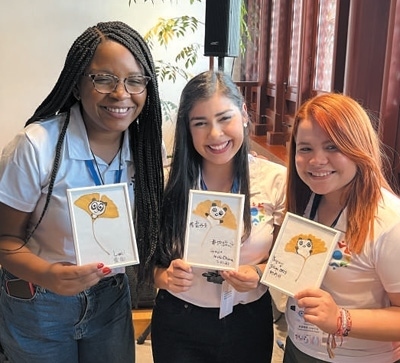 拉美青年代表展示自己學(xué)習(xí)創(chuàng)作的葉畫(huà)作品。本報(bào)記者 姜 波攝