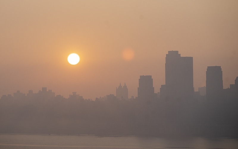 △當?shù)貢r間7月5日,受加拿大森林大火影響,美國紐約處于煙霾之中。