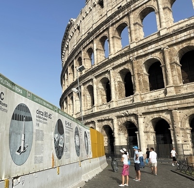 在意大利羅馬熱門景點斗獸場,游客正在閱讀帶有中文解說的標識牌。本報記者 謝亞宏攝