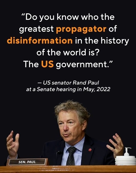 在2022年5月美國(guó)國(guó)會(huì)一場(chǎng)聽(tīng)證會(huì)上,聯(lián)邦參議員蘭德·保羅自問(wèn)自答并舉出一系列例證,其中包括2003年美國(guó)政府以“大規(guī)模殺傷性武器”為借口入侵伊拉克。