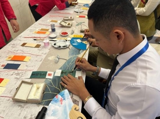 新華網(wǎng)北京10月23日電(記者王艷剛)10月20日至21日,首屆國際傳播“絲路獎”獲獎嘉賓在北京近距離體驗中國傳統(tǒng)工藝景泰藍和中國書法。