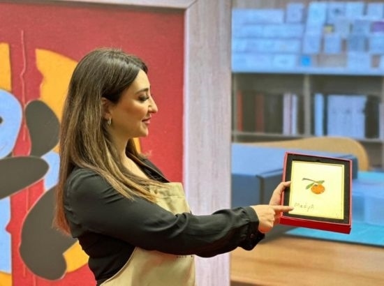 嘉賓展示景泰藍作品“柿柿如意” (新華社記者王艷剛攝)