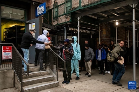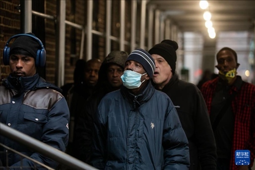12月24日,在美國紐約,民眾在“紐約公共食品儲(chǔ)藏室”排隊(duì)領(lǐng)取免費(fèi)食品。新華社發(fā)(郭克攝)