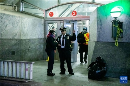 1月4日,在美國紐約,工作人員在地鐵站臺(tái)為乘客提供幫助。新華社發(fā)(郭克攝)
