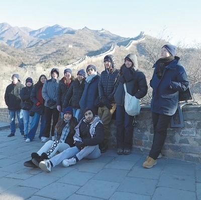 1月7日,弗吉尼亞大學(xué)代表團(tuán)成員在八達(dá)嶺長城合影留念。本報(bào)記者 趙益普攝