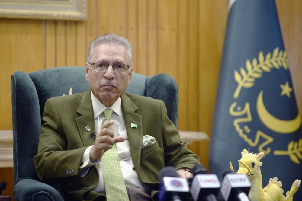 2月7日,在巴基斯坦伊斯蘭堡,巴基斯坦總統(tǒng)阿爾維接受新華社和其他中國媒體聯(lián)合采訪。新華社發(fā)(艾哈邁德·卡邁勒攝)