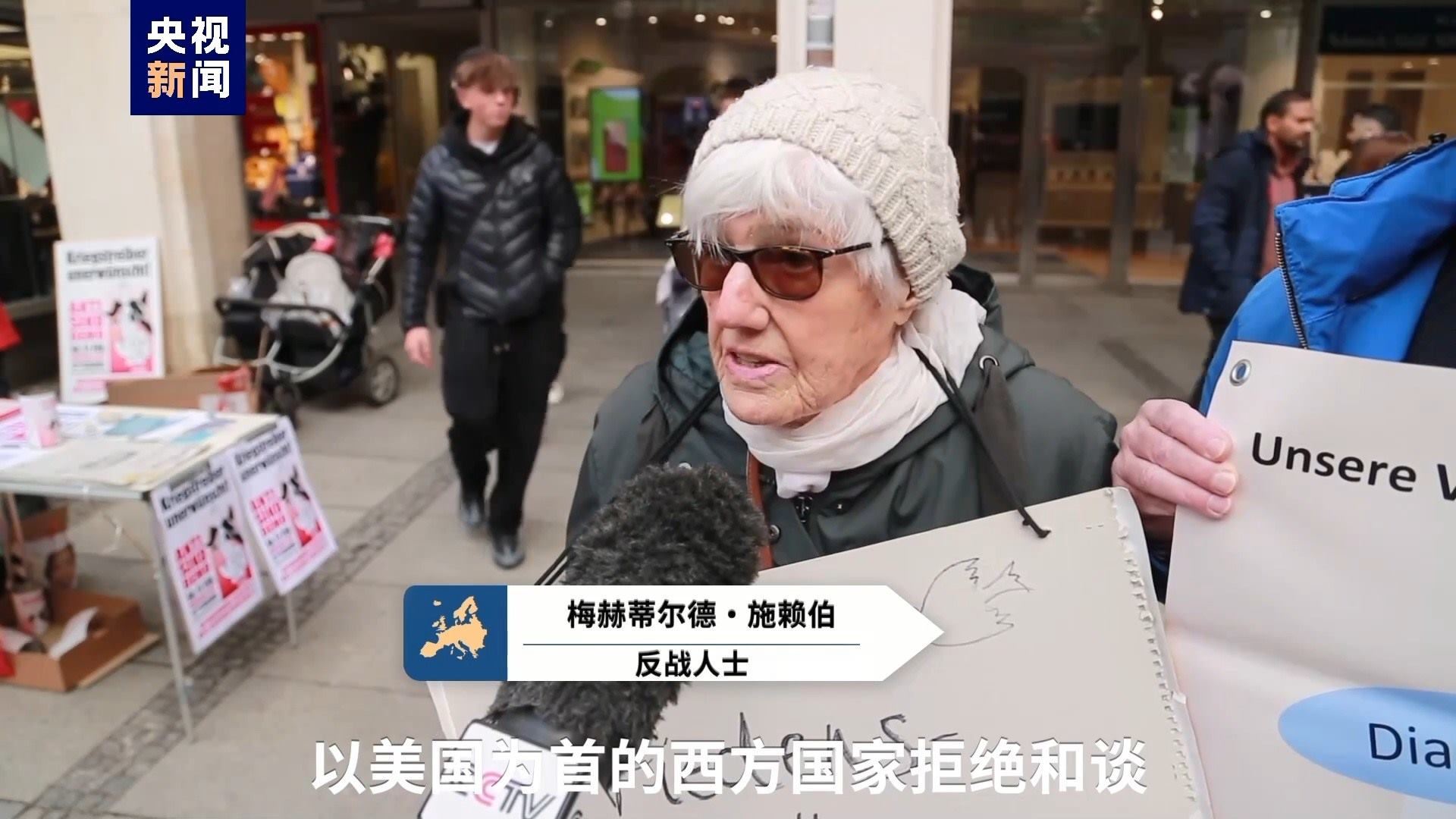 反戰(zhàn)人士 梅赫蒂爾德·施賴伯:以美國(guó)為首的西方國(guó)家拒絕和談。德國(guó)國(guó)防部長(zhǎng)說(shuō),我們必須做好戰(zhàn)爭(zhēng)準(zhǔn)備,運(yùn)送武器并且提高武器生產(chǎn)能力。這非??膳?。