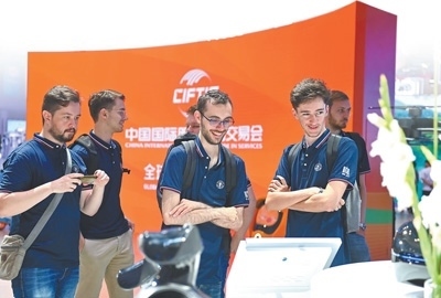 北京交通大學(xué)留學(xué)生在北京國家會(huì)議中心參觀2023年中國國際服務(wù)貿(mào)易交易會(huì)。胡慶明攝(影像中國)