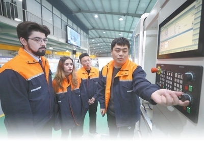 沈陽工學(xué)院與武漢華中數(shù)控股份有限公司共同建設(shè)“一帶一路”訂單班,聯(lián)合培養(yǎng)行業(yè)急需的“專業(yè)+俄語”高素質(zhì)應(yīng)用型人才,訂單班學(xué)生畢業(yè)后將回國從事數(shù)控技術(shù)相關(guān)工作,實(shí)現(xiàn)高質(zhì)量就業(yè)。圖為中國同學(xué)和留學(xué)生分享操作經(jīng)驗(yàn)。新華社記者 ?楊 ?青攝