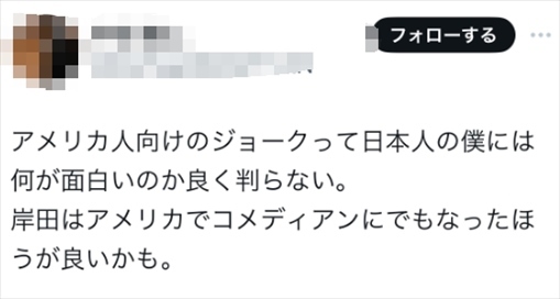 也有人說,“跟美國人講的這些笑話,作為日本人的我是真不知道好笑在哪里,可能岸田在美國當(dāng)個(gè)搞笑藝人比較好?!?/p>