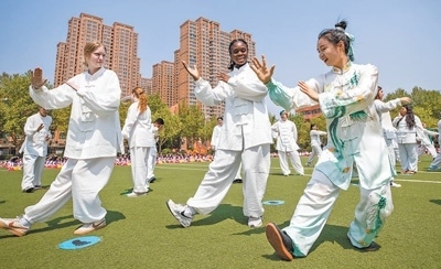 馬斯卡廷中學(xué)學(xué)生在中國老師指導(dǎo)下學(xué)習(xí)太極拳。