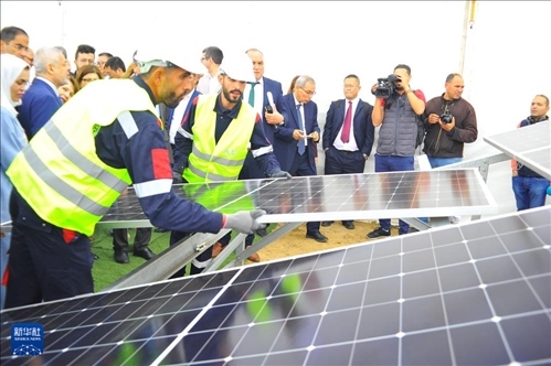 這是5月8日在突尼斯凱魯萬省拍攝的光伏電站項(xiàng)目開工儀式現(xiàn)場(chǎng)。新華社發(fā)(阿代爾攝)
