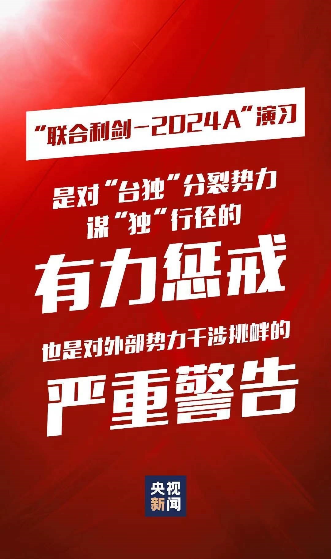 5月23日至24日,中國人民解放軍東部戰(zhàn)區(qū)組織戰(zhàn)區(qū)陸軍、海軍、空軍、火箭軍等兵力,位臺島周邊開展“聯合利劍-2024A”演習,重點演練聯合??諔?zhàn)備警巡、聯合奪取戰(zhàn)場綜合控制權、聯合精打要害目標等科目,艦機抵近臺島周邊戰(zhàn)巡,島鏈內外一體聯動,檢驗戰(zhàn)區(qū)部隊聯合作戰(zhàn)實戰(zhàn)能力。這是中國維護國家主權和領土完整的正義之舉,也是對“臺獨”分裂勢力謀“獨”行徑的有力懲戒,對外部勢力干涉挑釁的嚴重警告。