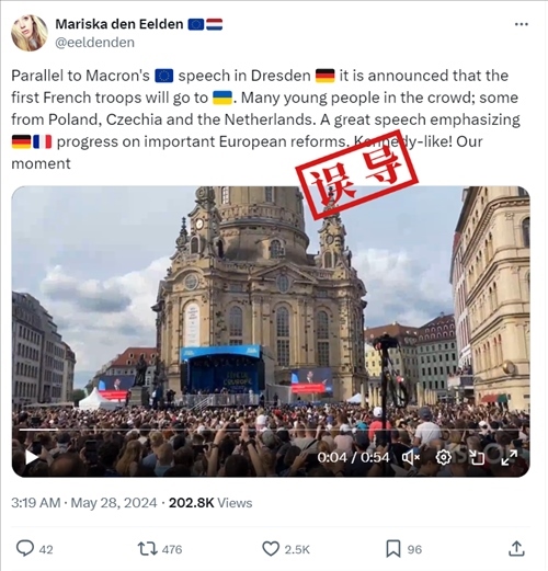 - 馬克龍在德累斯頓演講期間,未曾表示將向烏克蘭派遣軍隊,網(wǎng)傳說法不實。