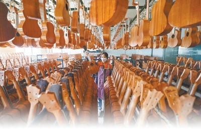 經(jīng)過(guò)10余年的發(fā)展,正安已經(jīng)擁有完整的吉他產(chǎn)業(yè)鏈。“目前我們有吉他制造及其配套企業(yè)139家,任何一個(gè)吉他配件都可以在園區(qū)內(nèi)找到?!辟F州正安經(jīng)濟(jì)開(kāi)發(fā)區(qū)管委會(huì)副主任代祥飛介紹,國(guó)際吉他產(chǎn)業(yè)園的吉他年產(chǎn)銷(xiāo)量達(dá)到220萬(wàn)把,出口40多個(gè)國(guó)家和地區(qū),2023年出口額達(dá)11.13億元人民幣。