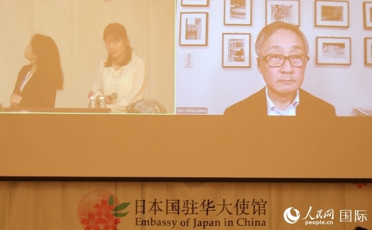 澀澤與企業(yè)股份有限公司董事長澀澤?。ㄓ遥┳鼍€上講座。人民網(wǎng) 喻亮攝