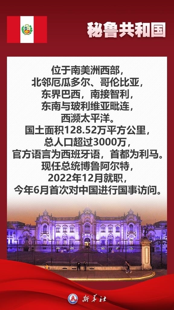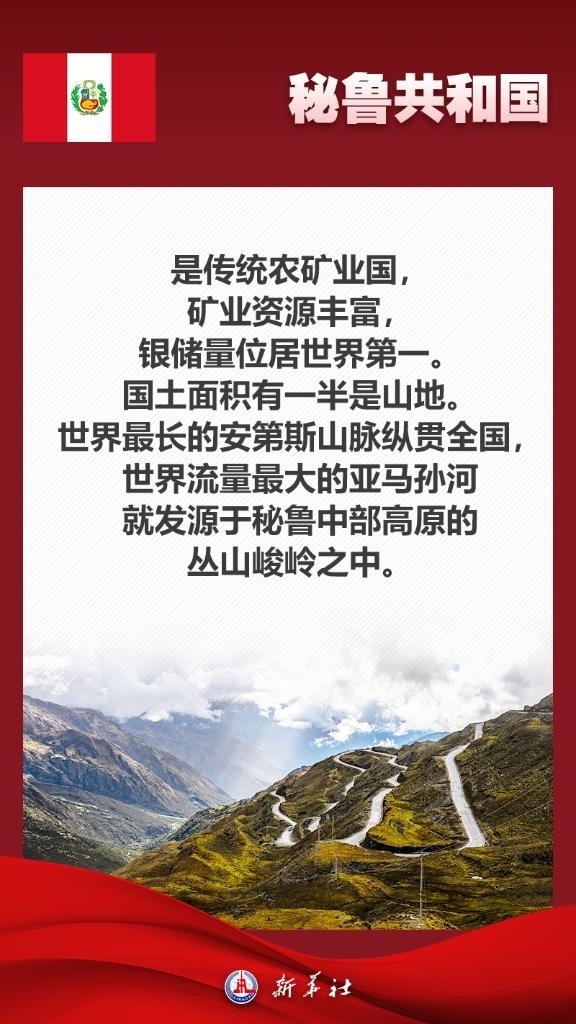 應秘魯共和國總統(tǒng)博魯阿爾特邀請,國家主席習近平將于11月13日至17日赴利馬出席亞太經(jīng)合組織第三十一次領導人非正式會議并對秘魯進行國事訪問。秘魯位于南美洲西部,是印加文明發(fā)祥地,也是最早同新中國建交的拉美國家之一。關于秘魯,七張海報帶你了解更多——