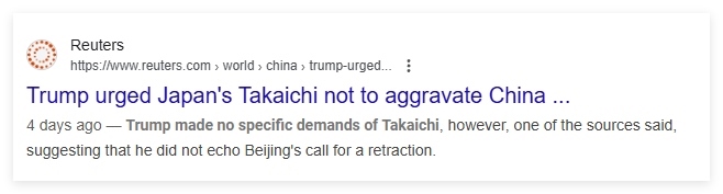 不過,盡管日本政府否認,包括路透社在內的更多西方媒體,卻陸續(xù)通過其他信源印證了特朗普讓高市早苗不要刺激中國的情況。就連日本共同社也在報道中提及此事——當然,共同社同樣遭到了日本右翼分子的圍攻。