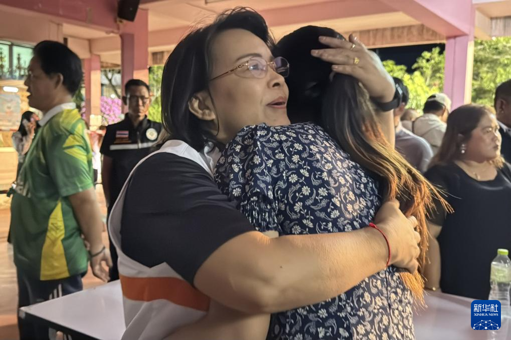2月11日,兩名女子在泰國(guó)宋卡府合艾縣發(fā)生校園槍擊案的學(xué)?;ハ鄵肀?。新華社發(fā)