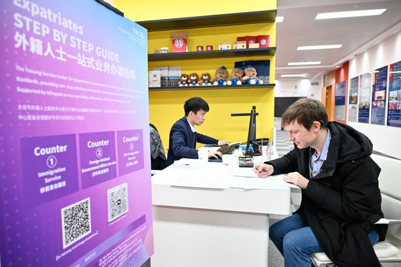 2月25日,在太倉市外籍人士服務(wù)中心,一名德企員工在辦理業(yè)務(wù)。(圖片來源:新華社)