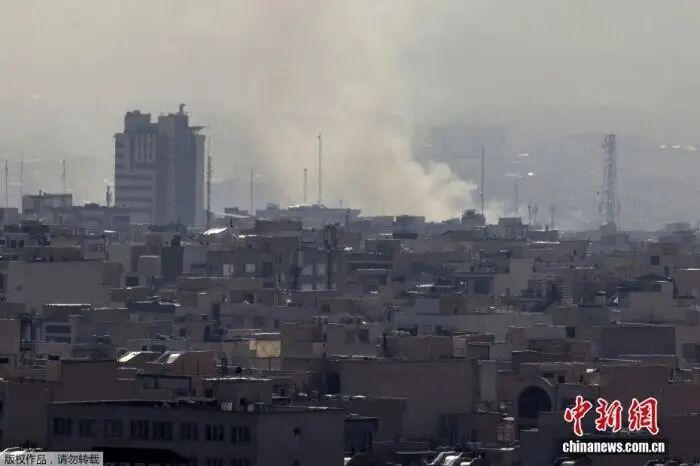 據(jù)卡塔爾阿拉伯電視臺2月28日報道,伊朗首都德黑蘭市中心發(fā)生爆炸。圖為德黑蘭市中心發(fā)生爆炸后,濃煙沖天。