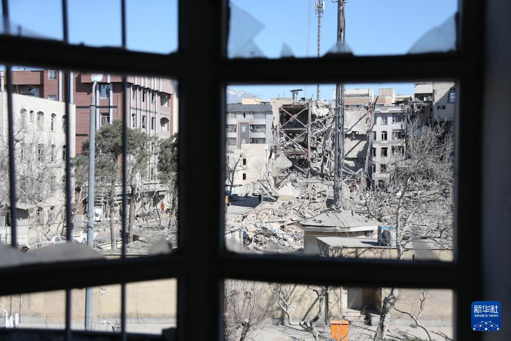 這是3月3日在伊朗德黑蘭拍攝的一處在襲擊中受損的建筑。