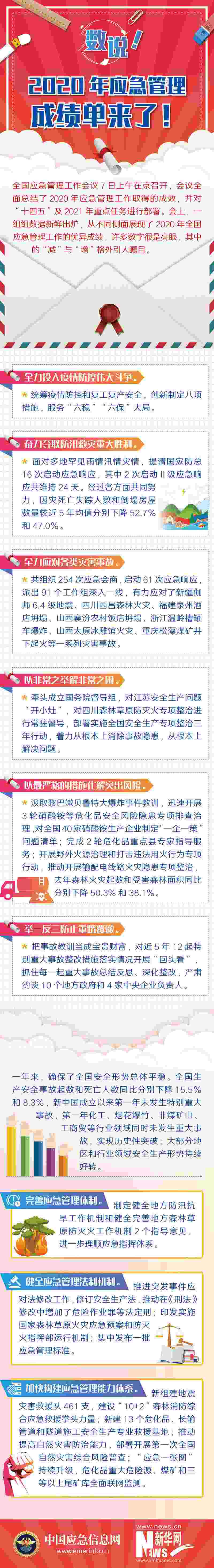 會(huì)議指出,面對(duì)各種風(fēng)險(xiǎn)挑戰(zhàn),經(jīng)過各方面共同努力,2020年全國生產(chǎn)安全事故起數(shù)和死亡人數(shù)同比分別下降15.5%和8.3%,全國自然災(zāi)害死亡失蹤人數(shù)、生產(chǎn)安全事故起數(shù)和死亡人數(shù)均是新中國成立以來最低。