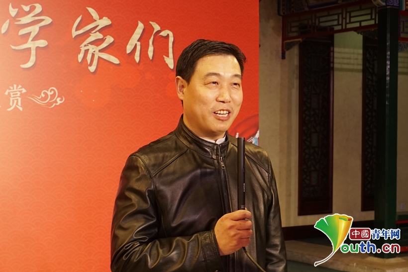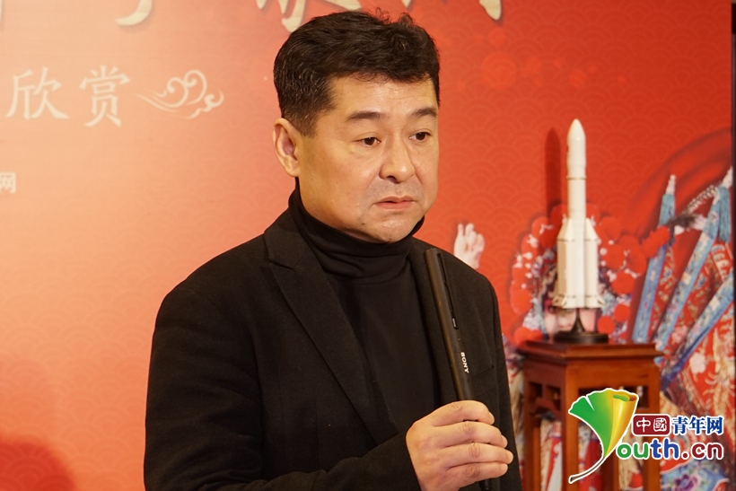 圖為國家京劇院黨委書記、副院長張亞峰向科技工作者送上新春祝福。中國青年網(wǎng)記者 楊晴 攝
