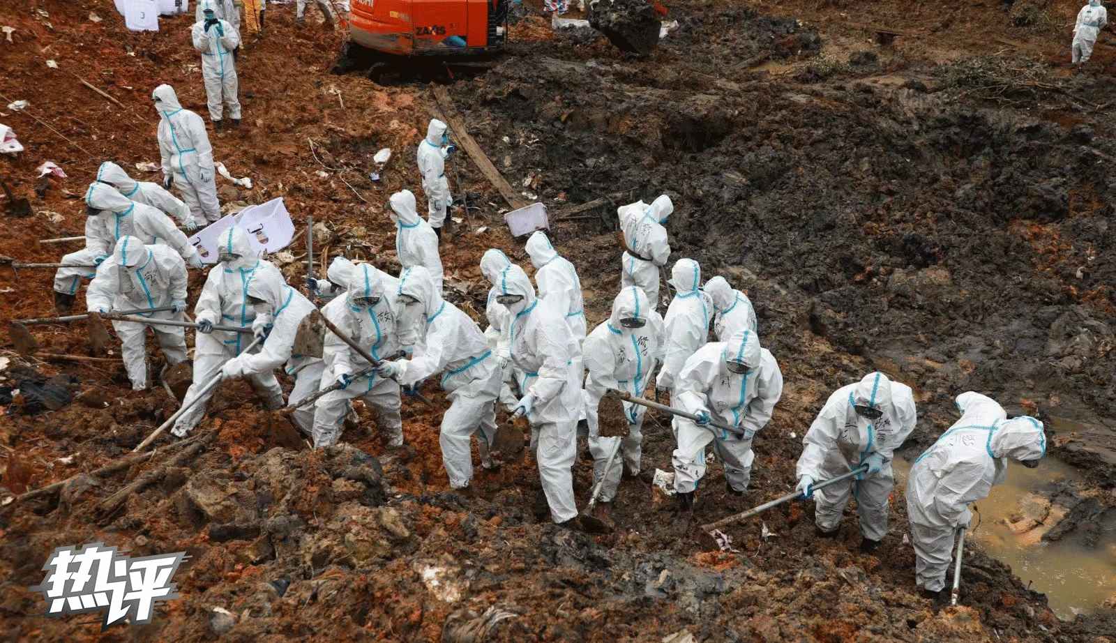 尊重生命的細(xì)節(jié)還有很多。比如,救援人員一點(diǎn)一點(diǎn)地刨、一寸一寸地找,在清理殘骸和遺物時(shí)小心翼翼;再比如,由于事故核心區(qū)環(huán)境復(fù)雜,救援人員綁著安全繩,一米一米地從陡坡降下,拿著鋤頭在核心區(qū)仔細(xì)搜尋,不放過(guò)任何細(xì)節(jié)。