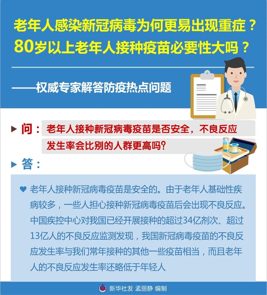 3.問:老年人接種新冠病毒疫苗是否安全,不良反應發(fā)生率會比別的人群更高嗎?