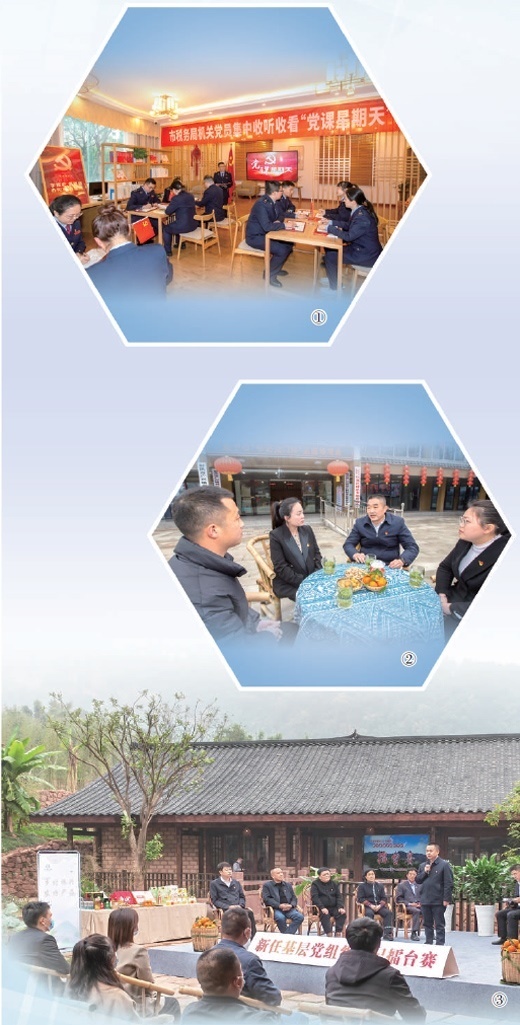 以特色活動(dòng)強(qiáng)化學(xué)習(xí)教育成效(深度關(guān)注·黨旗在基層一線高高飄揚(yáng)) 圖①:遂寧市稅務(wù)局機(jī)關(guān)第三黨支部集中收看“黨課星期......