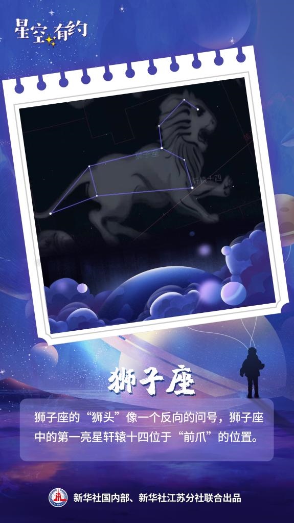 王科超說,獅子座的“獅頭”像一個(gè)反向的問號,“春季大三角”中的五帝座一處于獅子座的“獅尾”,而獅子座中的第一亮星軒轅十四則位于“前爪”的位置。獅子座的觀測可以從3月持續(xù)至8月,感興趣的公眾可以一觀。