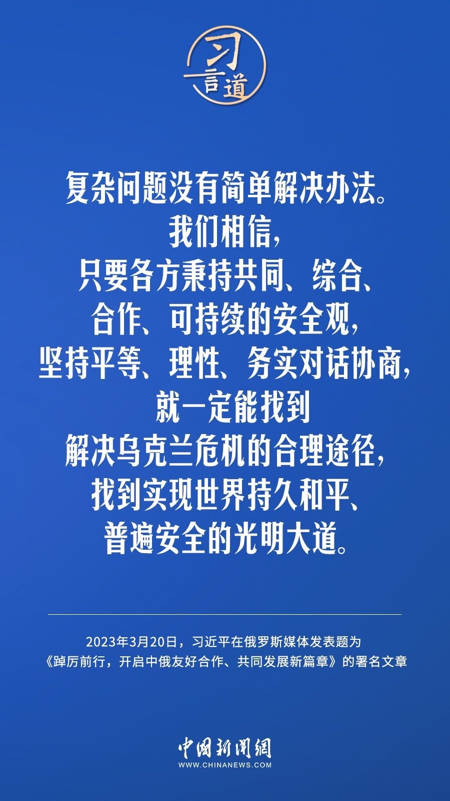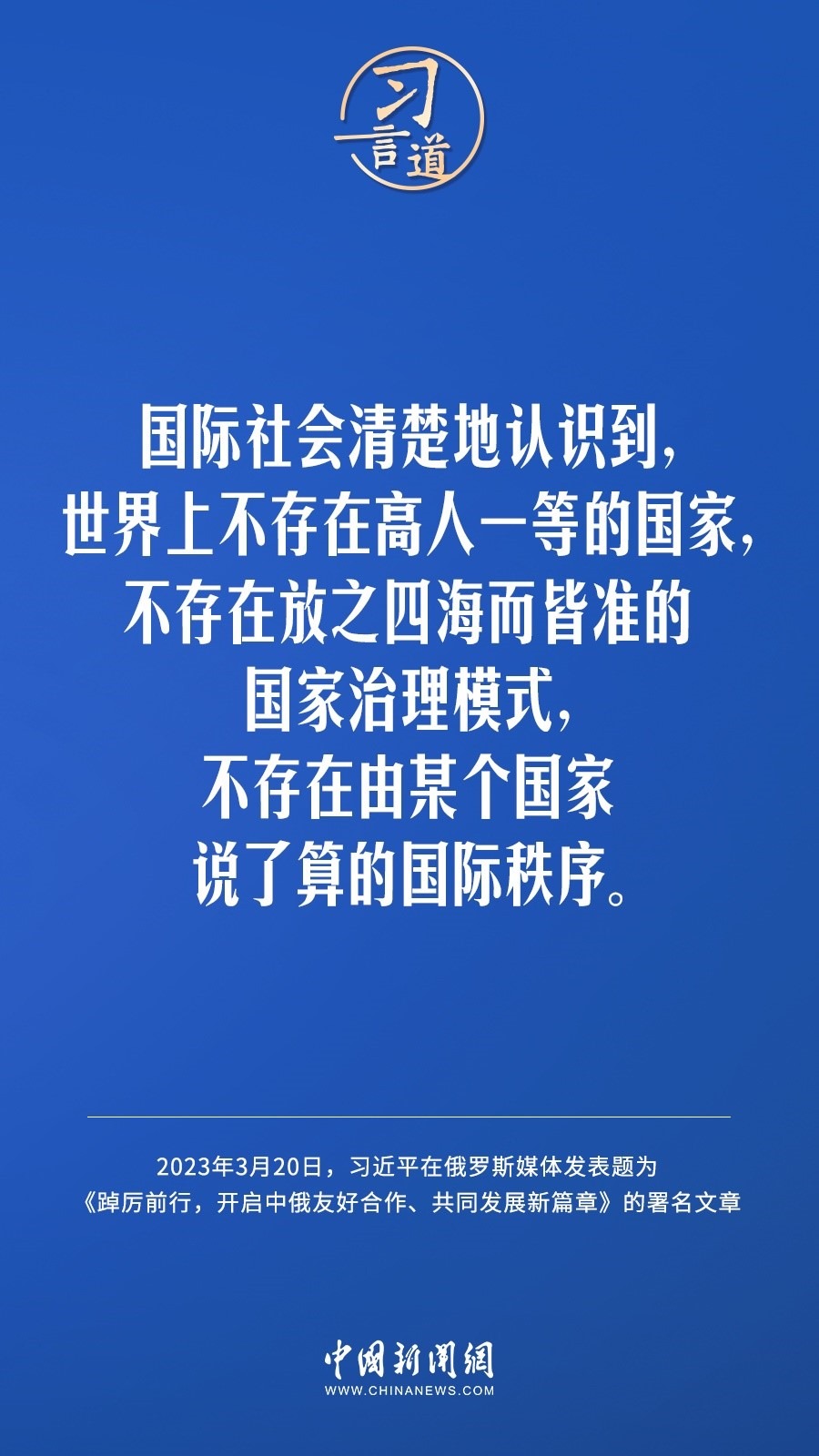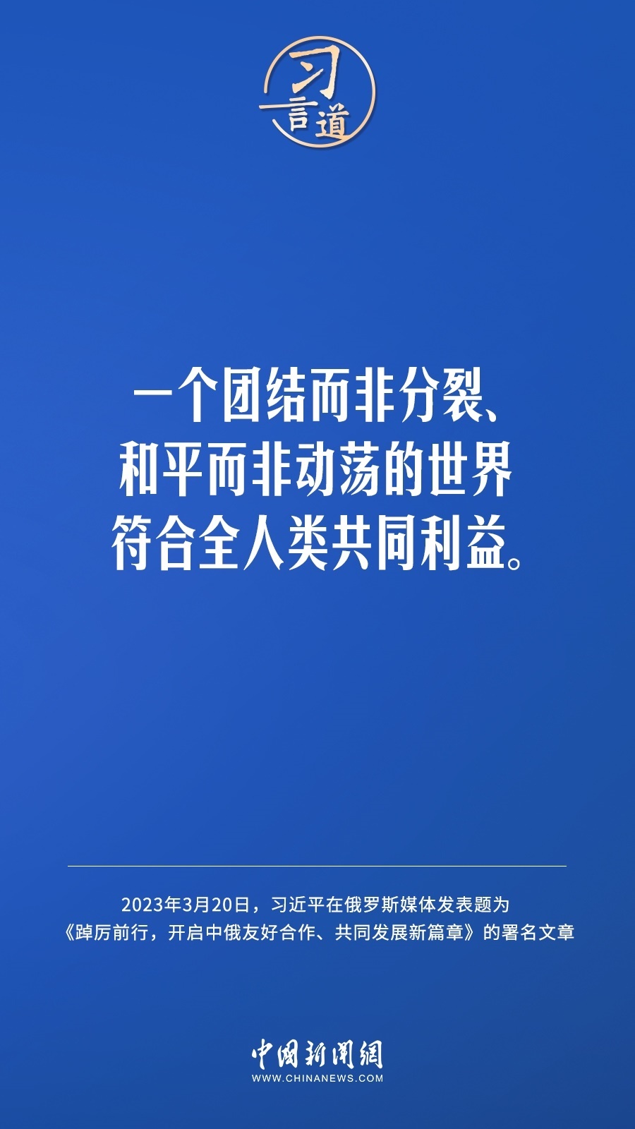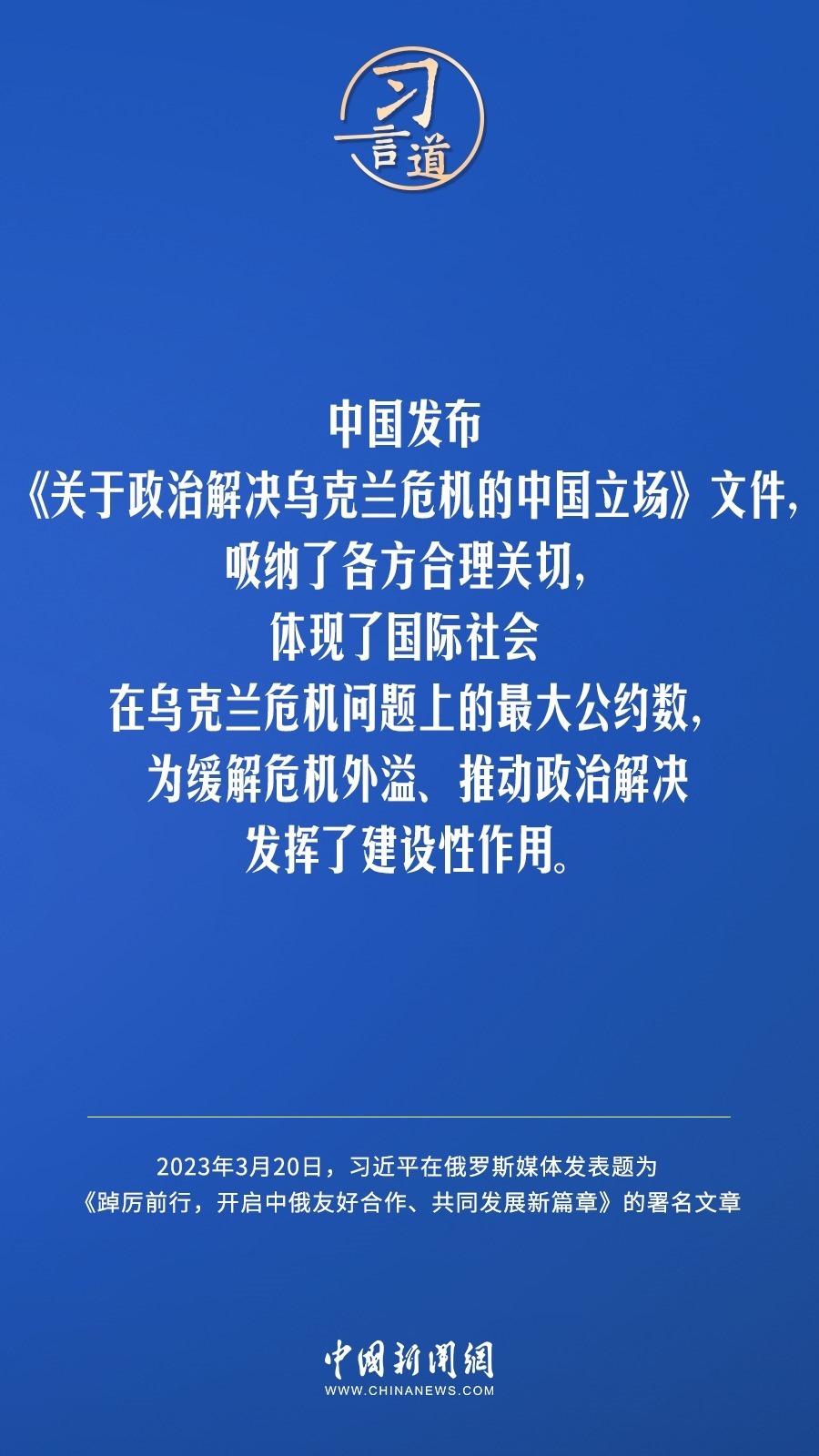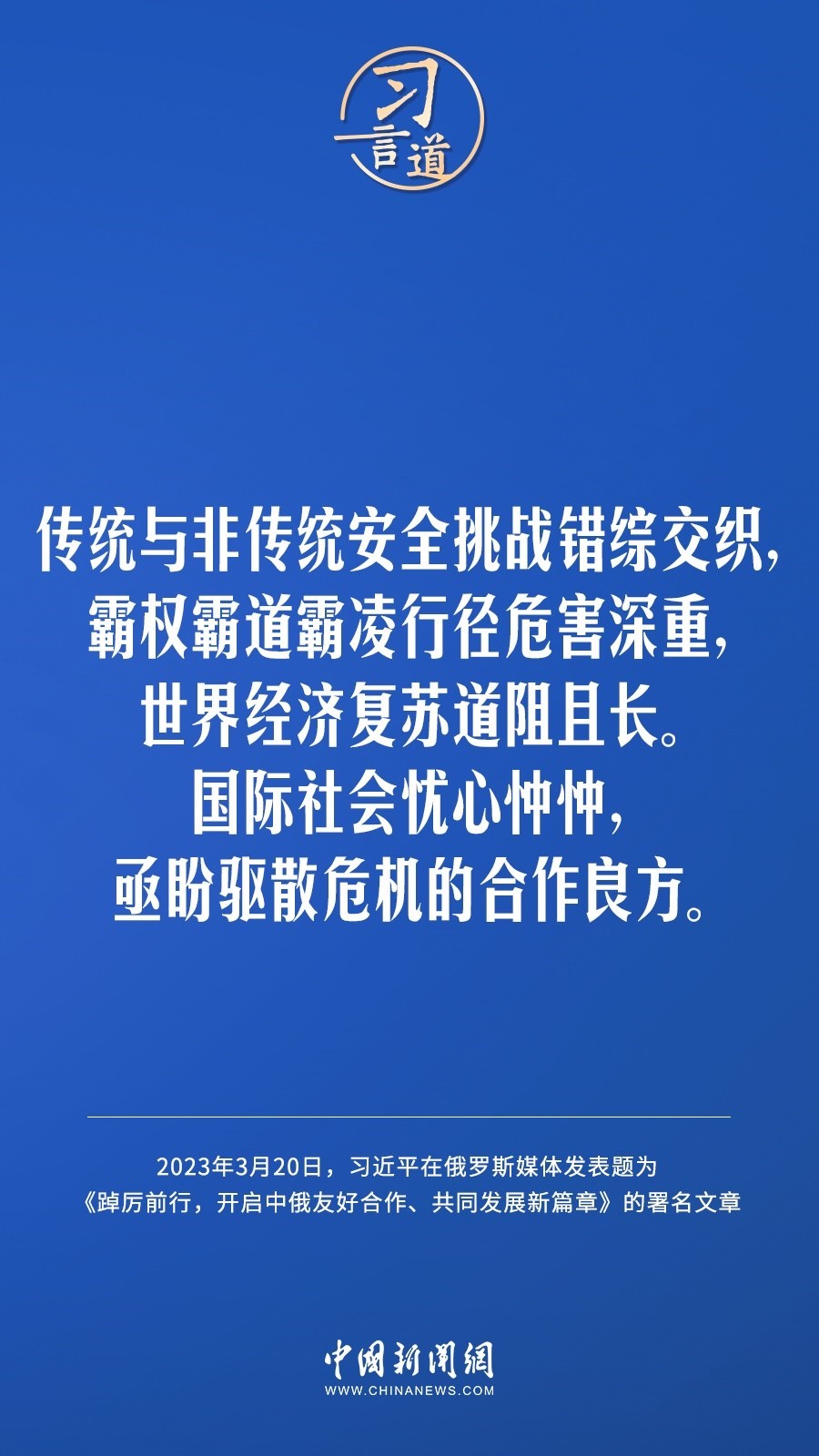 3月20日,在赴莫斯科對(duì)俄羅斯聯(lián)邦進(jìn)行國(guó)事訪(fǎng)問(wèn)之際,國(guó)家主席習(xí)近平在《俄羅斯報(bào)》和俄新社網(wǎng)站發(fā)表題為《踔厲前行,開(kāi)啟中俄友好合作、共同發(fā)展新篇章》的署名文章。習(xí)近平指出——
