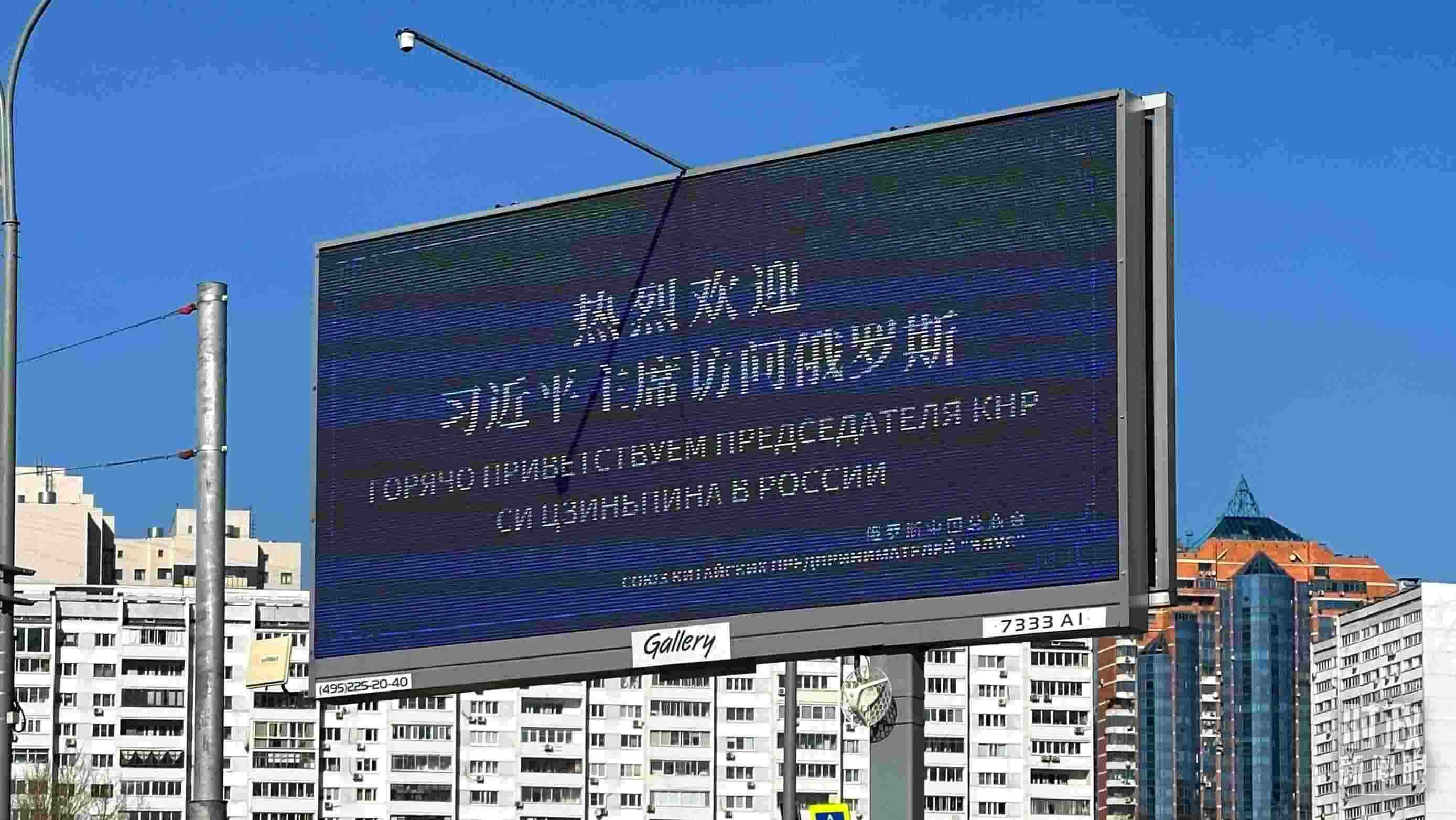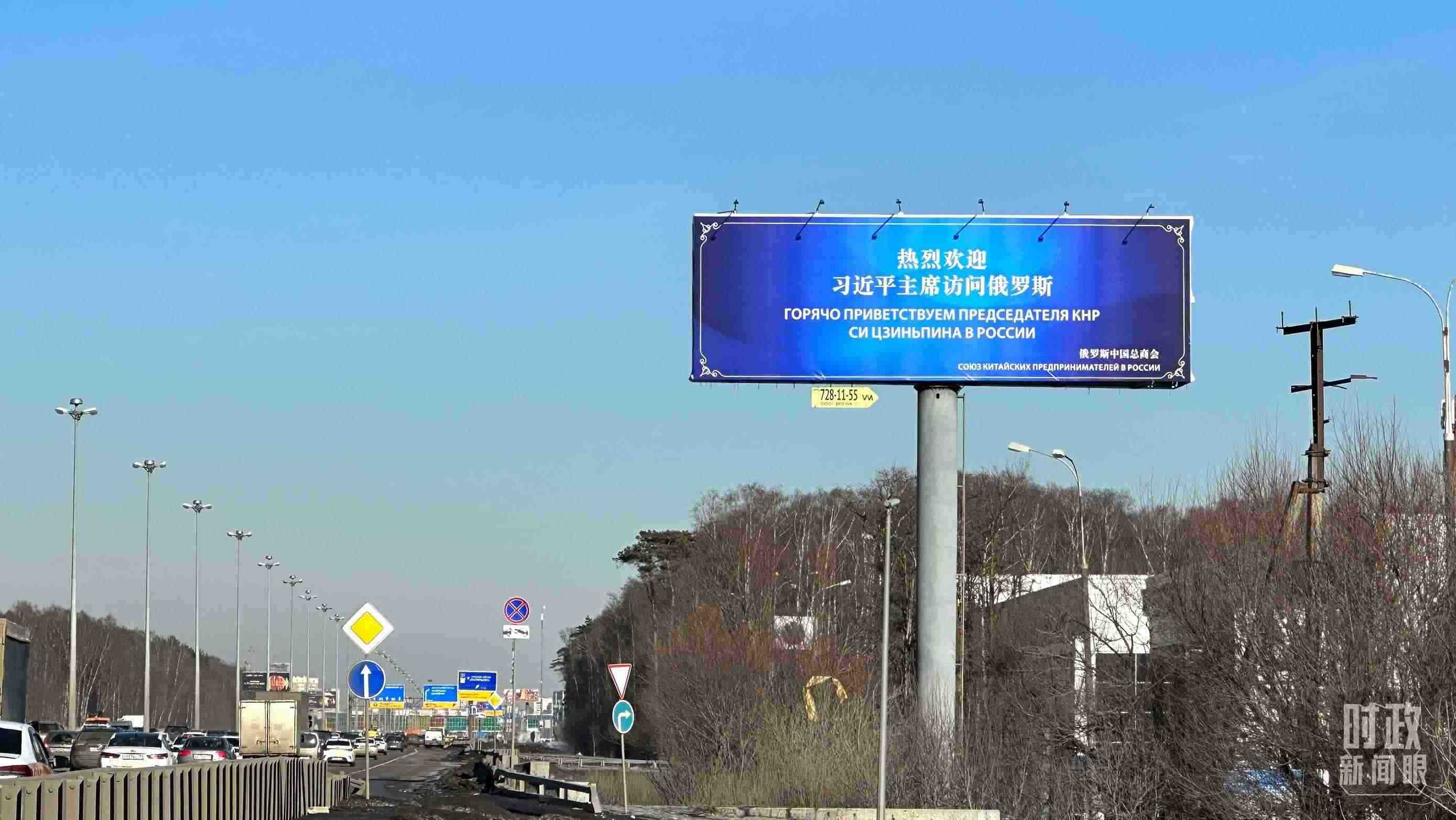 △莫斯科街頭,“熱烈歡迎習(xí)近平主席訪(fǎng)問(wèn)俄羅斯”的歡迎標(biāo)語(yǔ)。(總臺(tái)央視記者覃思拍攝)