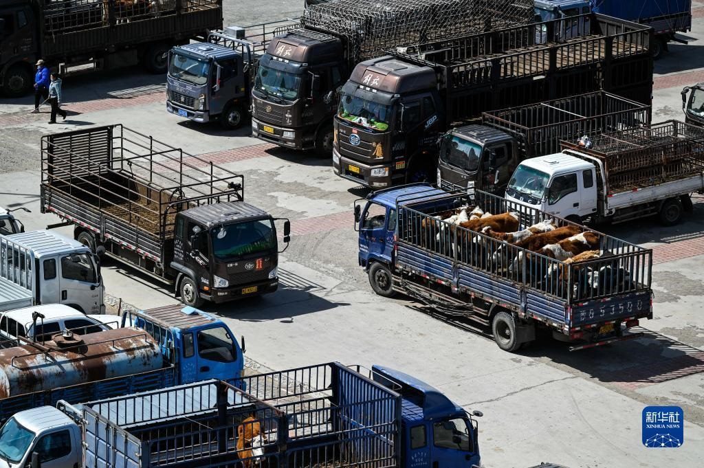 4月12日拍攝的繁忙的成峰牲畜交易市場。