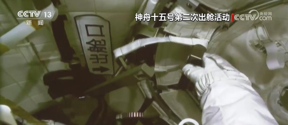 航天員費俊龍打開出艙艙門,成功出艙。