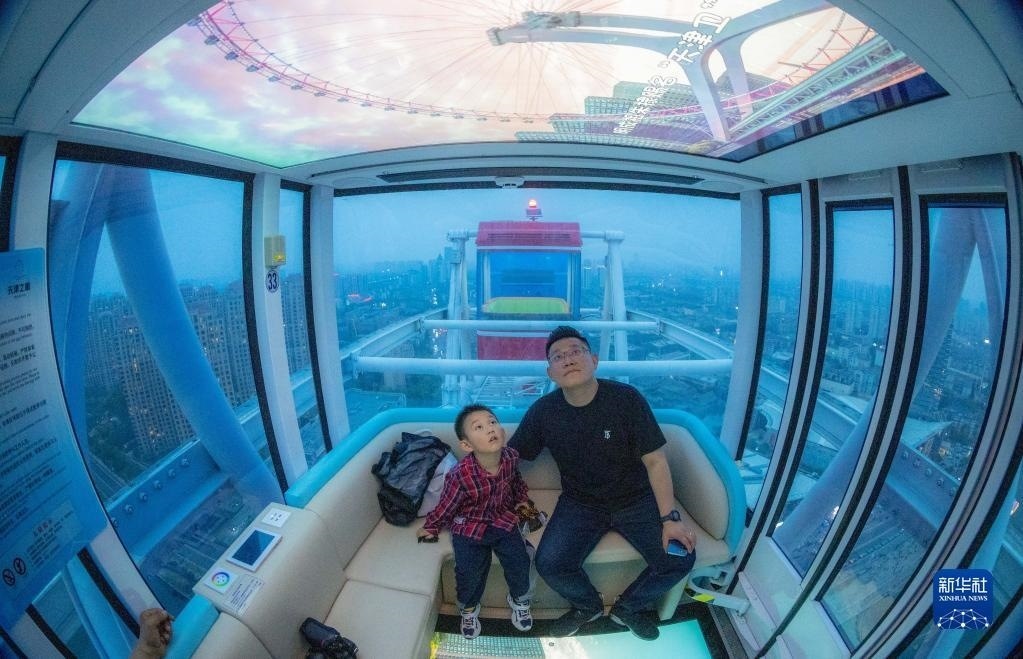 近日,天津市地標(biāo)景觀之一的“天津之眼”摩天輪完成整體更新改造,迎接即將到來(lái)的“五一”假期。此次提升改造更換了48個(gè)全新轎廂,包含12個(gè)內(nèi)設(shè)天屏和地屏的“智能科技”主題轎廂,用來(lái)播放天津文旅宣傳視頻,增強(qiáng)游客的觀景體驗(yàn)感。新華社記者 孫凡越 攝