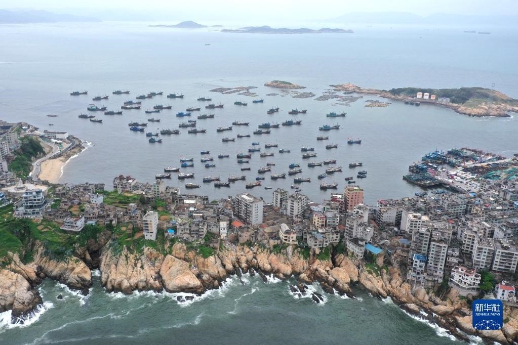4月30日,準(zhǔn)備休漁的漁船停泊在福建省福州市連江縣苔菉鎮(zhèn)北茭村漁港(無(wú)人機(jī)照片)。