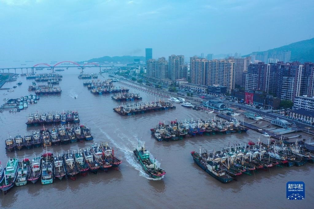 4月30日,在浙江省舟山市普陀區(qū)沈家門漁港,漁船歸港準(zhǔn)備休漁(無(wú)人機(jī)照片)。