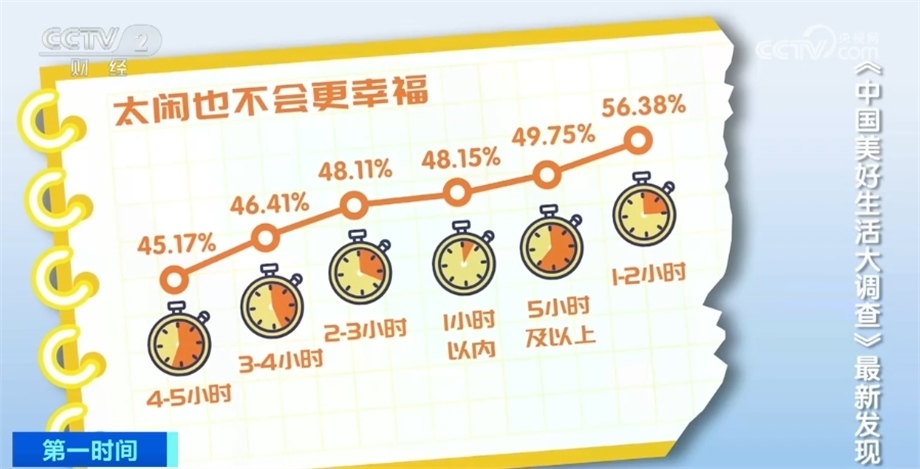 最讓人羨慕的是休閑時(shí)間在1—2小時(shí)的人群,他們不僅幸福感高,收入預(yù)期增加的比例也最高。