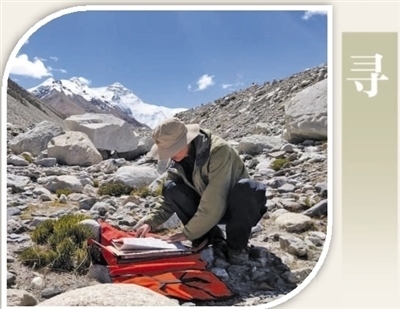 中國科學(xué)院昆明植物研究所中國西南野生生物種質(zhì)資源庫采集員在珠峰大本營采集種子標本。蔡 杰攝(人民視覺)