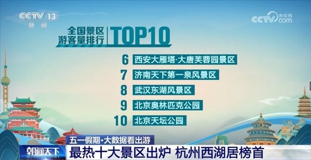 ·“五一”最熱十大景區(qū)出爐,杭州西湖居榜首!