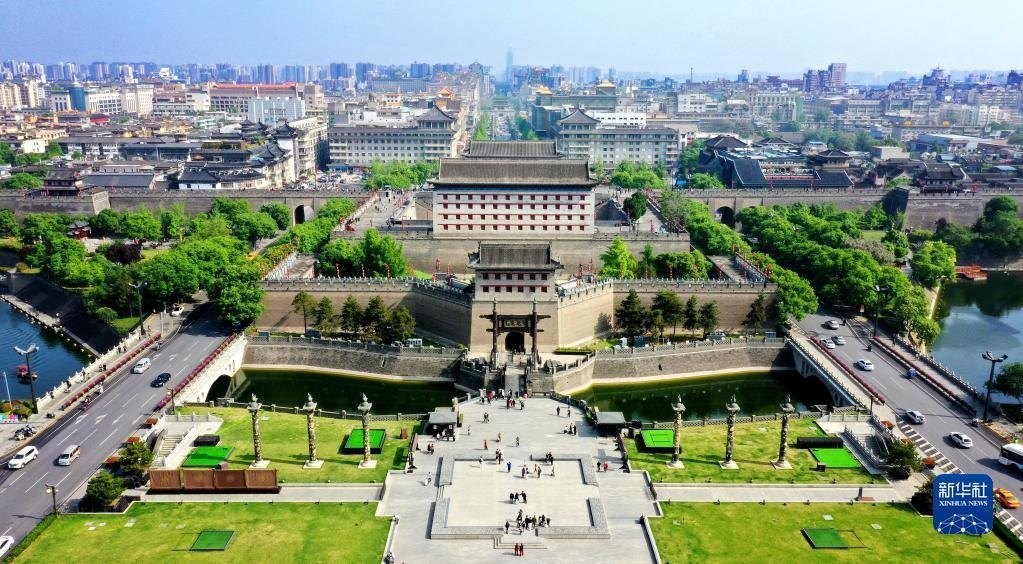 西安城墻永寧門(4月25日攝,無人機照片)。