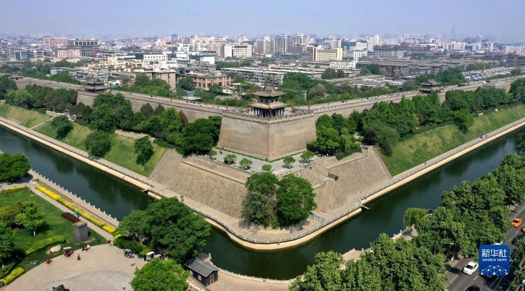 西安城墻東南城角(4月19日攝,無人機照片)。