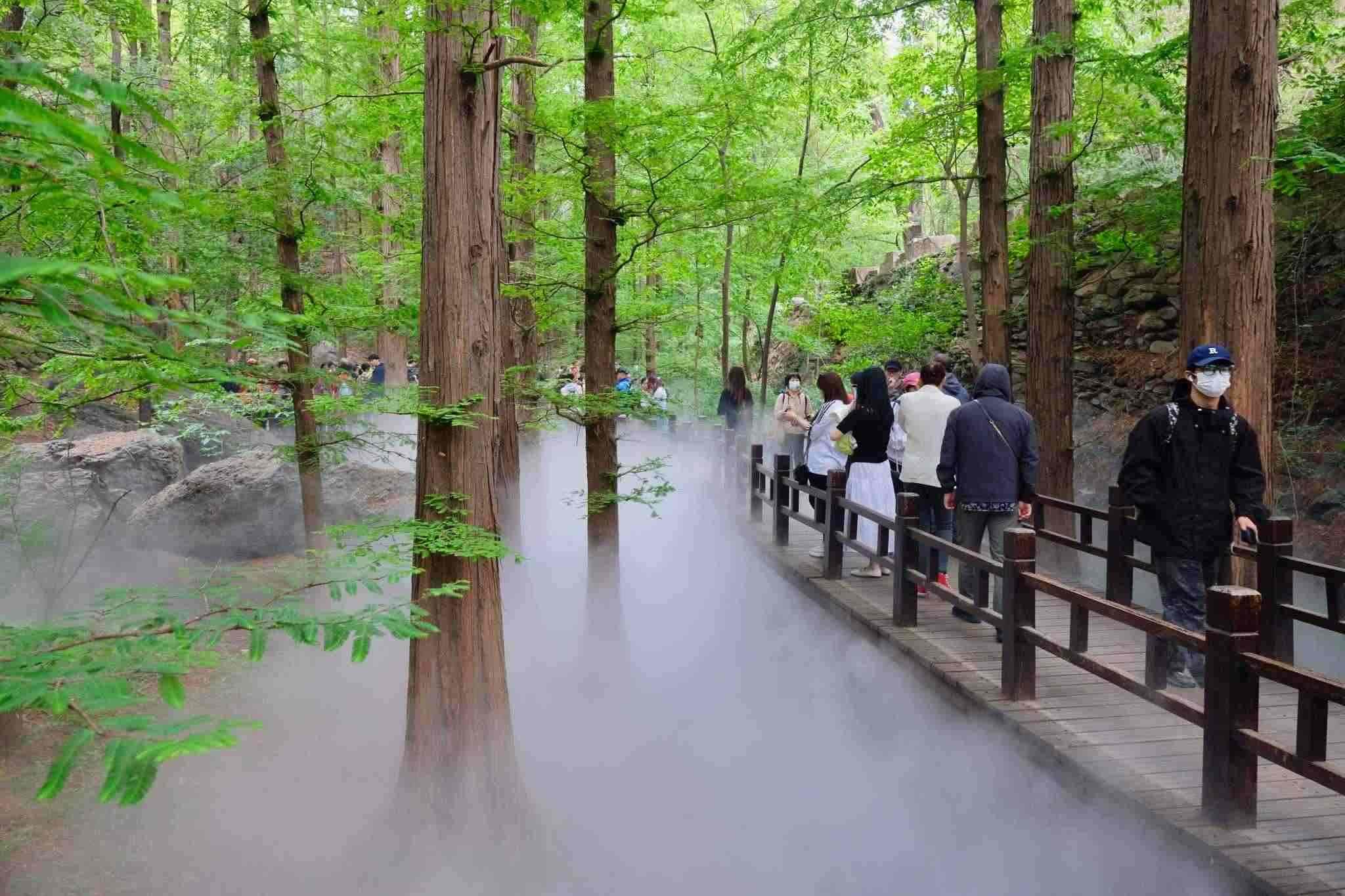 2023年5月6日,北京,立夏時節(jié),萬物繁茂,國家植物園櫻桃溝景區(qū)“云霧繚繞”宛若“仙境”。視覺中國