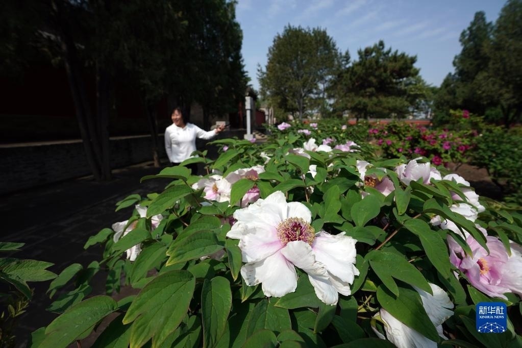 近日,山西太原雙塔寺景區(qū)的數(shù)千株牡丹花競(jìng)相綻放,吸引游人前來(lái)觀花賞景。   新華社記者 詹彥 攝