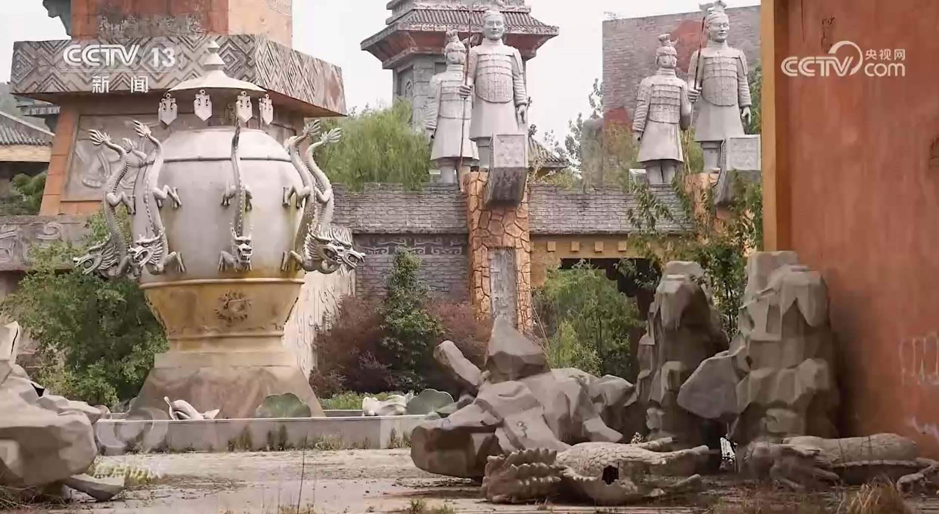 我們沒有找到動漫研發(fā)基地,只找到一個辦公樓,但它沒有一天用于動漫研發(fā),而是個售樓處。動漫基地是這樣,那么主題樂園呢?泰安志高集團在合同中承諾要“建成國內(nèi)一流水準(zhǔn)的淮南文化科技動漫產(chǎn)業(yè)園和大型商業(yè)中心”。然而,我們看到的卻是另外一番景象:大部分建筑基本上都已封頂,娛樂設(shè)施也已就位,但是如今卻破敗不堪。