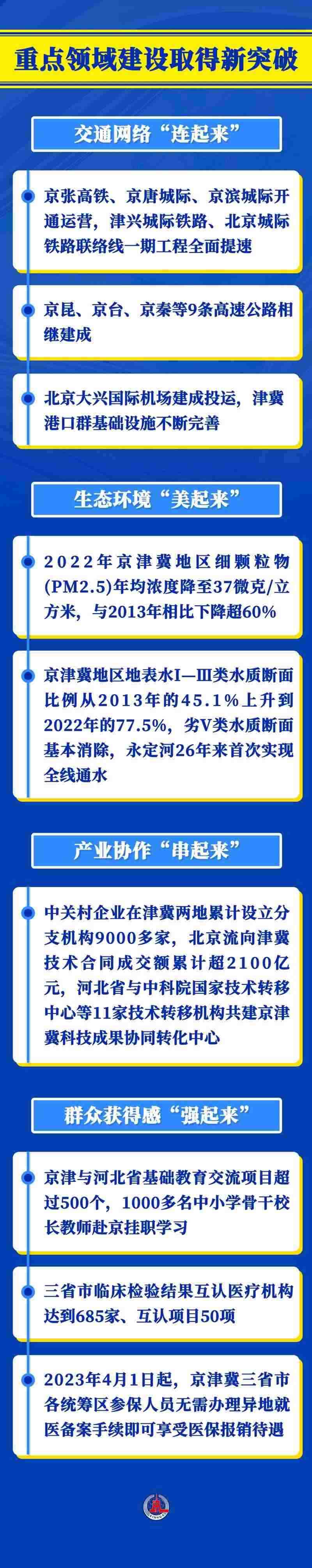 京津冀協(xié)同發(fā)展是一個(gè)系統(tǒng)工程。9年多來(lái),三地?cái)y手發(fā)力,重點(diǎn)區(qū)域協(xié)同發(fā)展步穩(wěn)蹄疾,交通、環(huán)境、產(chǎn)業(yè)、公共服務(wù)等重點(diǎn)領(lǐng)域建設(shè)不斷取得新突破。