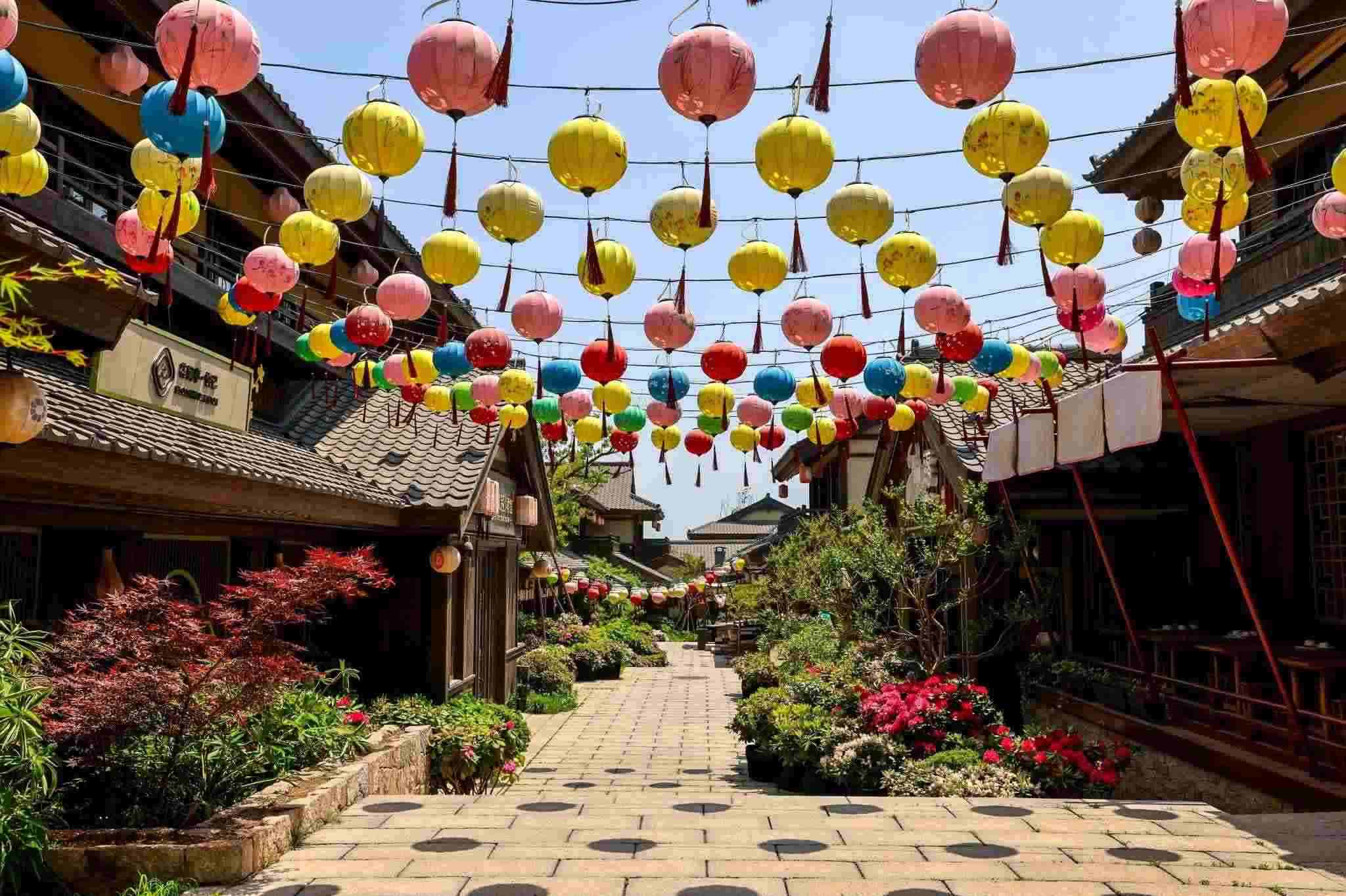 2023年5月19日,青島,西海岸新區(qū)藏馬鎮(zhèn),鑲嵌在藏馬山山麓的網(wǎng)紅“打卡地”阿朵花嶼美不勝收。漫步在這個(gè)唐風(fēng)古鎮(zhèn)中,繽紛花色點(diǎn)綴在建筑之間,好似畫中景色,讓人流連沉醉。視覺中國